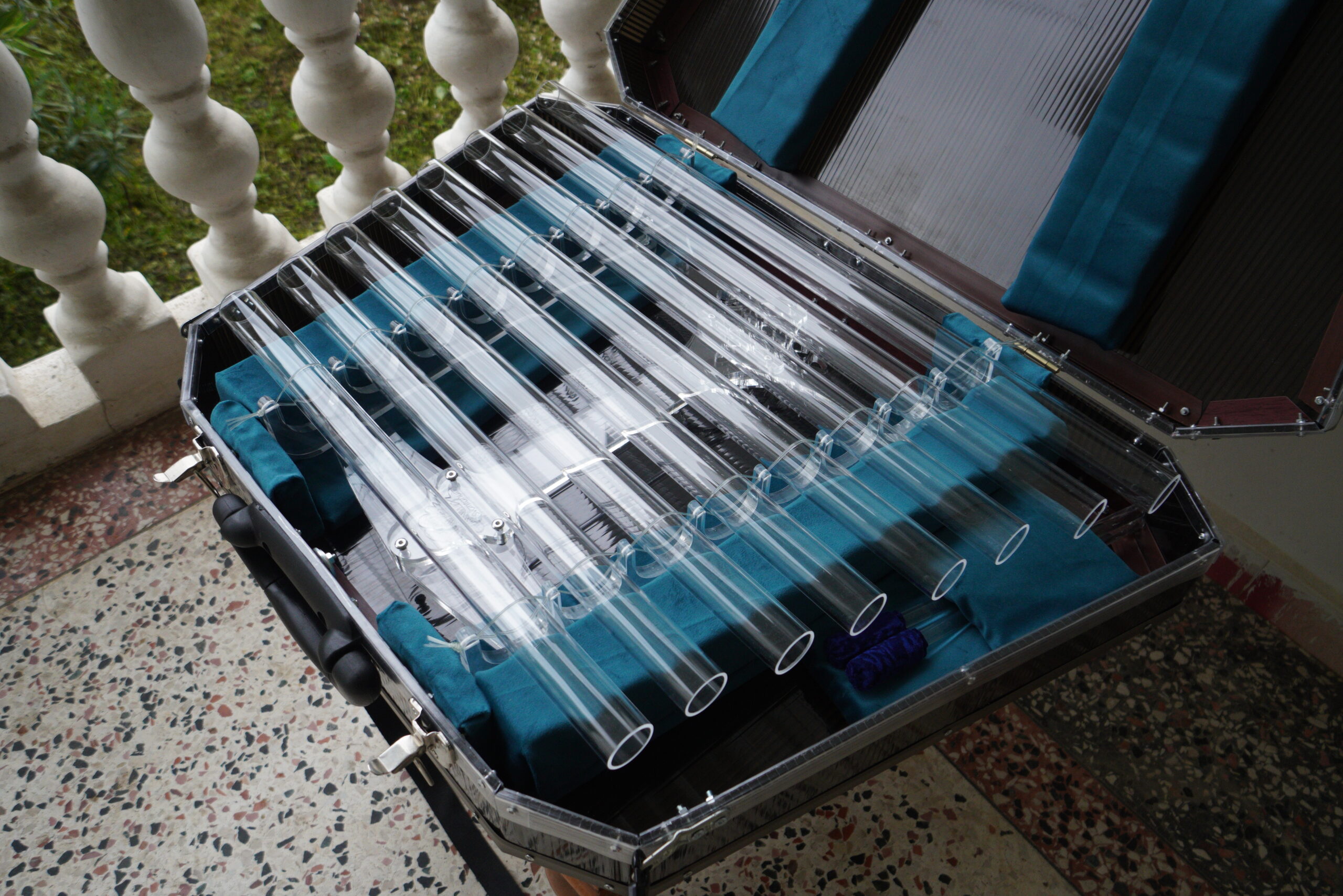 The Crystal Harp is a unique sound healing instrument, handcrafted from high-purity quartz glass. Each string resonates with clear, luminous tones that seem to float in the air, creating a deeply meditative and calming atmosphere. This harp is especially popular among sound healers, yoga practitioners, and spiritual musicians for its ability to balance energy and induce deep states of relaxation. Its elegant, transparent design makes it not only a powerful tool for sonic journeys but also a stunning visual piece in any healing or musical space. Whether played solo or combined with other instruments like crystal bowls or chimes, the Crystal Harp brings a celestial quality to your sound practice.